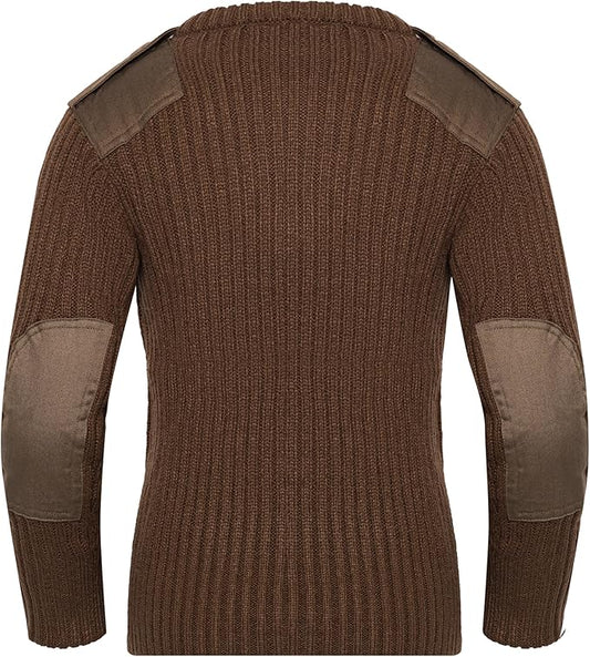 Fort Workwear Boys Knitted Sweater - Crew Neck Commando Style Elbow Shoulder Patches Jumper - Kids Military Winter Sweatshirt